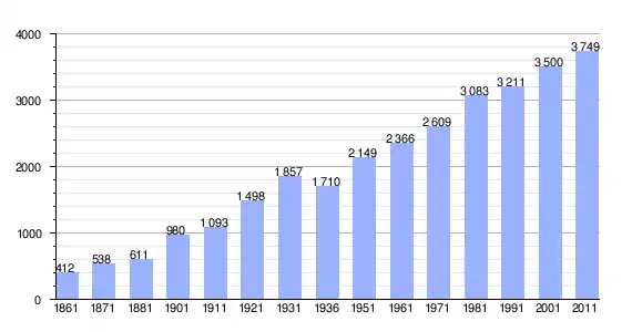 | Variação demográfica do município entre 1861 e 2011[3] |