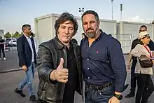 Milei subscreve a Carta de Madri, um documento redigido pela Vox que caracteriza grupos de esquerda, como o Foro de São Paulo e o Grupo de Puebla, como inimigos da Ibero-América e acusa-os de se envolverem num "projeto criminoso sob a égide do regime cubano" que "procura desestabilizar as democracias liberais e o estado de direito".[98][99][100] Ele assinou o documento juntamente com outros políticos de extrema-direita da região, incluindo Eduardo Bolsonaro, do Brasil, Rafael López Aliaga, do Peru, e José Antonio Kast, do Chile.[101]