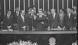 José Sarney tomou posse como presidente do Brasil em 15 de março de 1985, após a morte do então presidente eleito, Tancredo Neves.[1] A posse de Sarney marcou o fim do período militar no Brasil e o início de um novo governo democrático.[2]