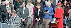 A tradição de um serviço religioso após a posse remonta a George Washington e desde a posse de Franklin Roosevelt, o serviço de oração ocorre na Catedral Nacional de Washington.[39] Entretanto, o serviço difere da "Prece Inaugural", outra tradição iniciada por Washington, quando os bispos metodistas Francis Asbury e Thomas Coke e o pastor John Dickins oraram pelo presidente em Nova Iorque.[40] Esta última tradição foi resumida em 1985, mas permanece através do Comitê Inaugural de Oração.