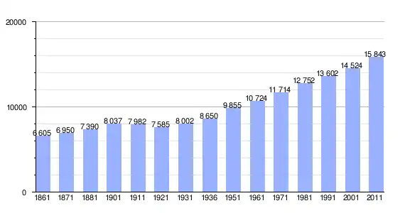 | Variação demográfica do município entre 1861 e 2011[3] |