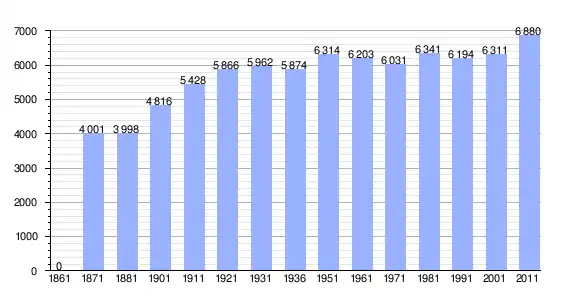 | Variação demográfica do município entre 1861 e 2011[3] |