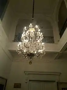 Os elementos decorativos presentes nos forros, paredes, colunas e sobrevergas de portas mantêm a discrição desejada pela ausência de cores fortes; a construção é quase toda branca internamente. Do Hall central se visualiza a galeria formada por sucessivos arcos, que circundam os cômodos do segundo pavimento. O desenho da repetição dos arcos, juntamente com o piso do hall que em madeira de tons claro e escuro esculpe formas geométricas concêntricas, o grande lustre central (que se encontra lá ainda hoje) e a luminosidade propiciada pelos vãos presentes agrega ao cômodo um tom clássico.