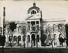 De estilo eclético com forte influência neobarroca, destacam-se na sua fachada o bloco de entrada, como enormes pilastras jônicas, as aberturas com sacada e balaustrada, a cornija saliente com platibanda acima, e o grande frontão profusamente decorado com o brasão da República, volutas e outros arabescos esculpidos. Outros frontões menores coroam os blocos secundários do prédio, que tem diversos volumes em projeção, colunas e revestimento simulando pedras rústicas.