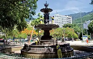 A praça existe desde 1928, ano em que foi ajardinada. Sua arborização é composta por um conjunto de árvores quase centenárias, das quais incluem-se flamboyants e sibipirunas. No interior da praça situa-se um chafariz francês, feito de bronze, que foi inserido no logradouro na década de 1960. Os filetes e o jorro d'água do chafariz passam por carrancas, anjinhos e golfinhos, componentes do fontanário.[1]