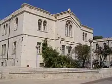 A Câmara Municipal do período do Mandato Britânico foi construída em 1930. Hoje ele forma a ponta oriental do complexo. Conforme a cidade cresceu, junto com a necessidade de fornecer serviços mais modernos e diversificados para uma população em expansão e igualmente diversa, os escritórios do governo da cidade também se expandiram e se espalharam por toda a cidade. O governo municipal descentralizado diminuiu em eficiência e foi decidido que um único prédio seria necessário para abrigar o governo local de Jerusalém. Após longas deliberações, o local atual foi escolhido, apesar do desafio de preservar o grande número de edifícios históricos e culturalmente significativos do século XIX.[1][3]