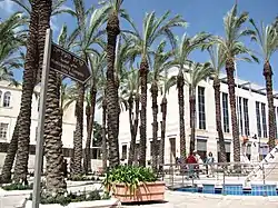 Os degraus que conduzem ao complexo da Jaffa Road são ladeados por 48 palmeiras, daí o nome Palm Plaza (em hebraico: רחבת דקלים). Várias estátuas de leões, o símbolo de Jerusalém, também adornam a praça.[4]