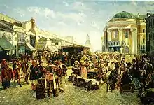 Ao longo do século XIX, a Praça Staraya e a Praça Novaya,um pouco ao norte, frequentemente trocavam seus nomes, confundindo moscovitas e visitantes; O nome atual se estabeleceu no início do século XX. Em 1899, a cidade fechou os mercados de pulgas em torno do muro da fortaleza. Antes da eclosão da Primeira Guerra Mundial, a Sociedade Mercante de Moscou havia reconstruído a Praça Staraya com uma cadeia de grandes edifícios de escritórios como o Boyarsky Dvor (por Fyodor Schechtel), um exemplo de Art nouveau, e o neoclássico edifício histórico da Praça Staraya (por Vladimir Sherwood Jr.). Desde 1918, eles esses edifícios foram ocupados por instituições federais soviéticas e atualmente russas.[2]