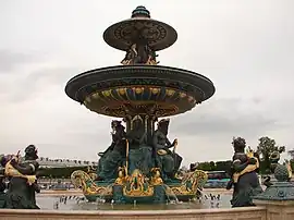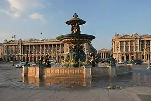 Entre 1836 e 1846, a praça foi transformada pelo arquiteto Jacques-Ignace Hittorff, conservando o princípio imaginado por Gabriel. Ele junta ao projeto duas fontes monumentais - a Fontaine des Mers (Fonte dos Mares) e a Fontaine des Fleuves (Fonte dos Rios) - de um lado e outro do obelisco e circunda a praça por lampadários e colunas rostais. A praça deseja ser, assim, uma celebração ao gênio naval da França, em referência à presença, em um dos edifícios edificados por Gabriel, do Ministério da Marinha. As duas fontes - inauguradas em 1º de maio de 1840 pelo prefeito Rambuteau - celebram a navegação fluvial (fonte norte, com figuras sentadas representando os rios Reno e Ródano e as colheitas de uva e trigo) e a navegação marítima (fonte sul, com o Mediterrâneo, o oceano e a pesca). Para a realização das estátuas que adornam as fontes, o arquiteto pediu ajuda a muitos artistas: Jean-François-Théodore Gechter, Honoré-Jean-Aristide Husson, François Lanno, Auguste-Hyacinthe Debay, Antoine Desboeufs, Jean-Jacques Feuchère, Antonin-Marie Moine, Jean-Jacques Elshoecht (dito Carle Elshoecht) e Louis-Parfait Merlieux. As colunas rostais levam proas de navio, que evocam igualmente o emblema da Cidade de Paris. Estátuas alegóricas de oito cidades francesas desenham o contorno do octógono imaginado por Gabriel. A estátua evocando Estrasburgo foi coberta de negro a partir de 1871, data da anexação da Alsácia-Lorena à Alemanha.