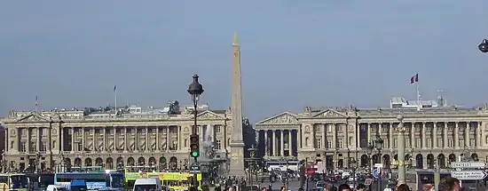 Em 1831, o quediva do Egito, Maomé Ali, oferece à França os dois obeliscos que marcam a entrada do palácio de Ramessés II em Tebas, atual Luxor. O primeiro chegou a Paris em 21 de dezembro de 1833 e é Luís Felipe I quem decide erigi-lo na Praça da Concórdia onde « ele não lembrará nenhum acontecimento político ». A operação, verdadeira proeza técnica, se realiza em 25 de outubro de 1836, sob a direção do engenheiro da Marinha Apollinaire Lebas, na presença de mais de 200 mil pessoas. O Rei e a família real, incertos quanto ao sucesso da operação, preferiram assisti-la dos salões do Guarde-meuble, e só apareceram sobre o balcão para acolher os aplausos da multidão no momento preciso em que o monolito se colocou na vertical.