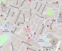 A ela conduzem as ruas de Soportales de la Herrería, Conde de San Román, Pasantería, Benito Corbal, Figueroa e a antiga Porta de Trabancas das muralhas, que faz parte do Caminho Português. Junto a ela encontra-se a igreja da Virgem Peregrina.