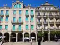 A oeste da praça estão dois edifícios notáveis art nouveau. O edifício art nouveau no número 8, mais a sul, é o mais antigo dos dois. Foi concebido pelo arquitecto Andrés López de Ocáriz Robledo, que concluiu o projecto em Junho de 1912[15]. O edifício foi promovido por Juan Pazos, um emigrante rico que regressou da América, que comprou quatro das cinco pequenas casas do século XV que delimitavam a praça a oeste e que foram demolidas[16]. É composto por um rés-do-chão com arcadas de duas alturas, três andares e um sótão. A decoração art nouveau com motivos florais e geométricos aparece na fachada principal acima e abaixo das portas e janelas, bem como no frontão central curvo com um arco de volta perfeita e nas cornijas de cada lado[15]. O edifício tem duas grandes varandas centrais de ferro forjado nos dois primeiros andares e quatro varandas laterais no terceiro andar. Foi completamente renovado em 2007 pelos arquitectos César Portela e Enrique Barreiro Álvarez[17].