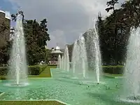 A praça conta ainda com coreto e fonte luminosa. O traçado e os jardins, inspirados no Palácio de Versalhes, são um convite aos passeios e caminhadas.