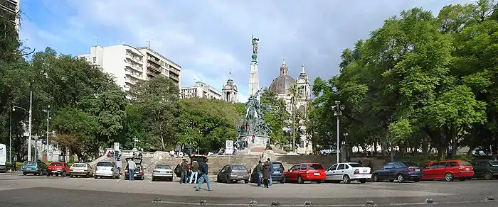 Em 24 de outubro de 1914 foi inaugurado o Monumento a Júlio de Castilhos, em homenagem ao estadista gaúcho Júlio de Castilhos. O monumento, em bronze, construído na gestão do governador Carlos Barbosa, foi criado pelo escultor Décio Villares. Cercam a figura central do governante diversas personificações de virtudes, como a Coragem e a Prudência, e de valores e instituições, como a Educação e o Civismo.[1] Assim como muitas construções de Porto Alegre, o Monumento sofreu ao longo do tempo com atos de vandalismo e de depredação. Pouco depois, a antiga Matriz era demolida para a construção de uma catedral maior, a presente Catedral Metropolitana de Porto Alegre.[4]