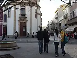 Centrando a praça, a poente encontra-se a capela que por muito tempo deu o nome ao largo, a Capela de São Roque, hoje mais conhecida como Capela de Santiago.