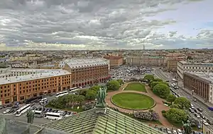 Ao leste da catedral está o Hotel Astoria, com seis andares, projetado por Fyodor Lidval. Ele foi inaugurado em 1912 e foi um dos hotéis mais luxuosos do Império Russo.[1] Adjacente ao Astoria está o Hotel Angleterre, que é lembrado como o local da morte do poeta Serguei Iessienin. O edifício na esquina da rua Malaya Morskaya[2] é associado a Dostoiévski, que viveu lá entre 1848 e 1849. Nesse período, ele publicou seu primeiro trabalho de ficção, Noites Brancas.