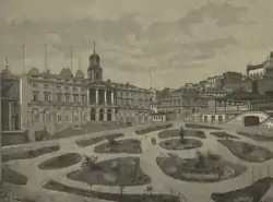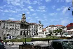 ![]() O Palácio da Bolsa (à esquerda), a estátua do Infante D. Henrique (ao centro), o Instituto do Vinho do Porto e o Mercado Ferreira Borges (à direita). | |
