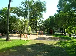 Em sua área de 6,3 mil m², há equipamentos de recreação infantil, um espelho d'água (acima do qual há um mirante com grades) e duas obras de arte do escultor Xico Stockinger, uma em ferro fundido e outra de pedra. Uma placa instalada em 1996 serve de homenagem às vítimas dos bombardeamentos de Hiroshima e Nagasaki. Nela está escrito: