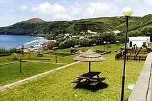 Margeia o vale da Ribeira da Praia, sendo o conjunto emoldurado por altas encostas, e que pode ser devidamente apreciado a partir do Miradouro da Macela, no seu extremo ocidental.