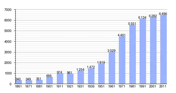 | Variação demográfica do município entre 1861 e 2011[3] |