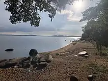 Trecho oeste da Praia, com cidade de Guaíba ao fundo.