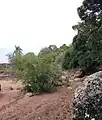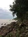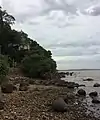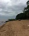 A praia apresenta trechos de areia e rochas, além de rampas construídas por proprietários dos lotes que a margeiam.