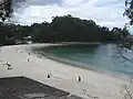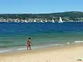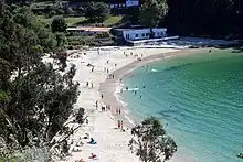 É uma praia em forma de concha na ria de Pontevedra, cercada por uma floresta exuberante em um afloramento rochoso.[1] A areia é branca e fina e é protegida dos ventos,[2] com águas calmas e adequadas para a prática de desportos aquáticos : esqui aquático, vela, veículo aquático pessoal, windsurf e pedalinho.