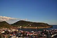 “Do alto do Monte das Moças melhor se vê a baía arredondada e o Monte Queimado que a separa de outra concha mais pequena – o Porto Pim.”