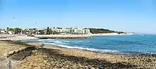 Vista geral da Praia de Santo Amaro de Oeiras, com a desembocadura da ribeira da Laje