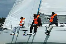 Nos veleiros tipo cruzeiro, e pelo facto do patilhão servir também para isso, associado ao peso natural destes veleiros a equipagem limita-se a sentar-se no bordo fazendo contrapeso (imagem).