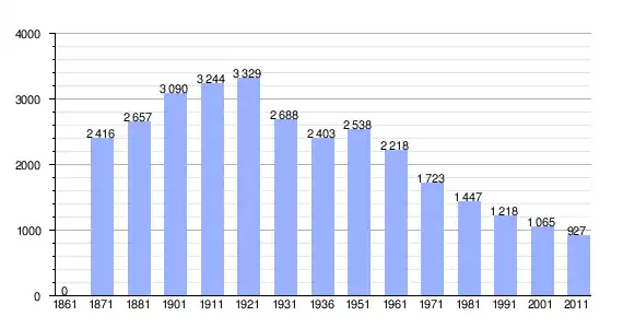 | Variação demográfica do município entre 1861 e 2011[3] |