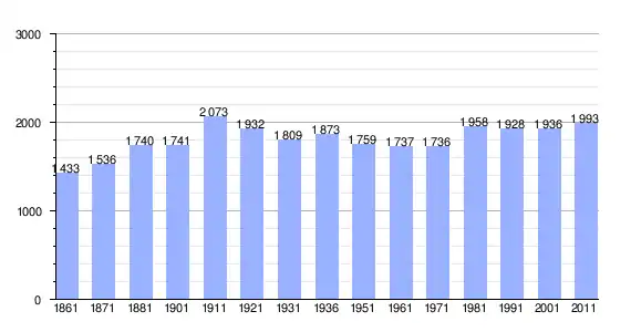 | Variação demográfica do município entre 1861 e 2011[3] |