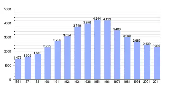 | Variação demográfica do município entre 1861 e 2011[3] |