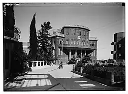 O município de Tel Aviv foi inicialmente localizado no Rothschild Boulevard. Quando foi necessário mais espaço para escritórios, o município alugou um hotel na Rua Bialik, perto da casa do poeta nacional Chaim Nachman Bialik, construído pela família Skora em 1924. O hotel foi inaugurado em 1925, mas foi considerado não lucrativo devido à falta de turistas. Em 1928, o município comprou o hotel. Mais tarde, abrigou um tribunal no térreo.[1]