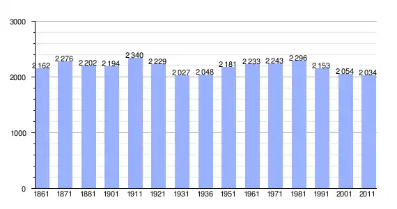 | Variação demográfica do município entre 1861 e 2011[3] |