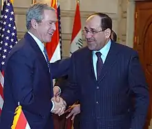 A partir do "Ato de Liberação do Iraque", sancionado por Bill Clinton em 1998, o governo estadunidense conclamou uma mudança de regime no Iraque. A plataforma eleitoral de 2008 dos Republicanos mencionava "plena implementação" do Ato e a deposição do Presidente Saddam Hussein, com foco na reconstrução de uma coalizão, estabelecimento de sanções e inspeções internacionais e apoio político ao Congresso Nacional Iraquiano.
