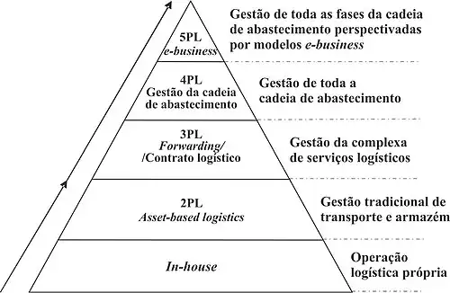 - Third-party logistics provider (3PL) ou forward logistic – Como já se definiu anteriormente, o termo PSL significa uma empresa externa contratada para fornecer actividades logísticas. As empresas externas podem fornecer todo o processo logístico ou apenas actividades logísticas seleccionadas. Ou seja, o contrato, que traz benefícios para as duas partes, é efectuado entre dois parceiros e compreende quer o fornecimento de serviços básicos de logística, quer a oferta de serviços personalizados, com uma grande amplitude de funções de serviço. Em certa medida, com 3PL surge uma aliança logística ou estratégica, com o propósito de estabelecer uma relação próxima entre a empresa e o fornecedor de logística, não apenas para realizar tarefas logísticas, mas também para assumir riscos e benefícios de uma forma conjunta. O contrato é efectuado por um longo período de tempo e pressupõe-se normalmente que o prestador de serviços trabalha com meios próprios (frota, armazéns, entre outros).