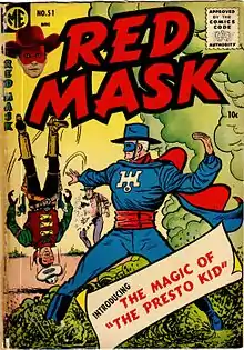 primeira aparição de Presto Kid, Red Mask #51, Setembro-outubro de 1955, arte de Dick Ayers