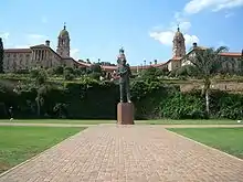 ![]() No sentido horário a partir do canto superior esquerdo: horizonte do centro financeiro de Pretória, Monumento Voortrekker, Church Square, Palácio da Justiça, Estádio Loftus Versfeld, edifício administrativo da Universidade de Pretória e vista frontal da Union Buildings. | |||