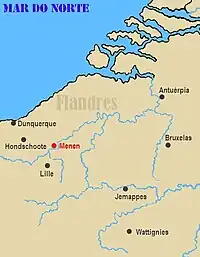Menen situa-se cerca de 19 Km a Norte de Lille, na margem do Rio Lys. Era uma cidade fortificada.