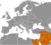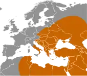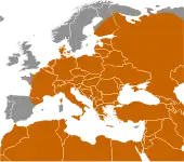 A recente expansão dos humanos anatomicamente modernos chegou à Europa há cerca de 40 mil anos, a partir da Ásia Central e do Oriente Médio, como resultado da adaptação à grande caça da subglacial das estepes.[94] Os neandertais estavam presentes tanto no Oriente Médio quanto na Europa, e as populações que chegavam de humanos anatomicamente modernos miscigenavam-se com populações de neandertais em grau limitado. Populações de humanos modernos e neandertais se sobrepunham em várias regiões, como a Península Ibérica e o Oriente Médio.