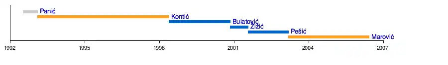 ![]() Primeiro-ministro da Sérvia e Montenegro Radoje Kontić 9 de fevereiro de 1993 – 19 de maio de 1998 | |