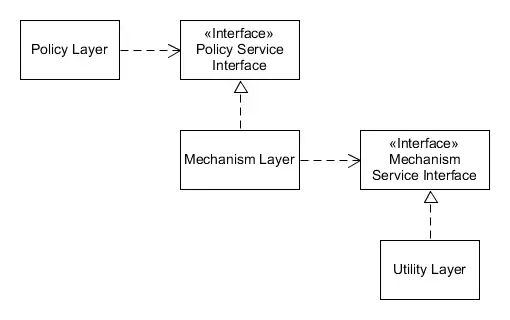 Em uma aplicação direta da inversão de dependência, os resumos são de propriedade do superior/política de camadas. Este grupos de arquitectura superior/política de componentes e as abstrações que definem inferior serviços junto no mesmo pacote. O nível inferior camadas são criadas por herança/implementação destas classes abstratas ou interfaces.