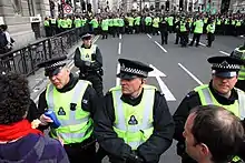 - Orde, Hugh (5 de maio de 2011). «The British approach to policing protest». The Guardian. ISSN 0261-3077