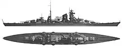 | Armamento | 8 canhões de 203 mm 12 canhões de 105 mm 12 canhões de 37 mm 8 canhões de 20 mm 12 tubos de torpedo de 533 mm |