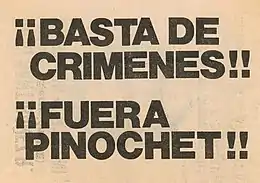 - EFE (28 de novembro de 2006). «Procesan a Pinochet y ordenan su arresto por los secuestros y homicidios de la "Caravana de la Muerte"» (em espanhol). 20 minutos. Consultado em 5 de setembro de 2019. Cópia arquivada em 5 de setembro de 2019