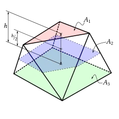 Prismatoide com faces paralelas A1 e A3, seção transversal no meio A2 e altura h