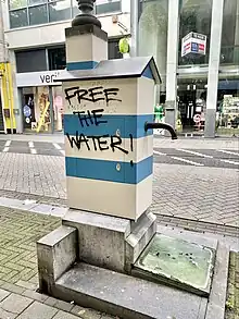 Entretanto, 84% dos contratos adjudicados principalmente nos anos 90 ainda estavam ativos. Por outro lado, em muitos países, como no Japão, Canadá, Egito, Paquistão ou Escandinávia, não existem empresas privadas de água. Nicarágua, Holanda e Uruguai até aprovaram leis que proíbem a privatização da água.[27] Na Itália, em junho de 2011, uma lei a favor da privatização da água foi revogada por uma maioria esmagadora de italianos através de um referendo.[28] Em 2019, Baltimore, Maryland tornou-se a primeira grande cidade dos Estados Unidos a proibir a privatização da água.[29]
