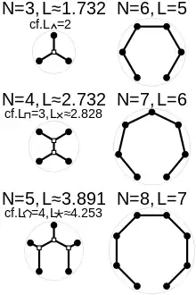 Para N = 3, existem dois casos possíveis: se o triângulo formado pelos pontos dados tem todos os ângulos que são menores do que 120 graus, a solução é dada por um ponto de Steiner localizado no ponto de Fermat; caso contrário, a solução é dada pelos dois lados do triângulo, que se encontram no ângulo igual ou maior que 120 graus.