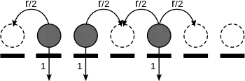 em que a soma é sobre todas os vizinhos de em . Isto significa que cada local espera um tempo exponencial com a taxa correspondente e, em seguida, troca (de modo que se torna e vice-versa).[2]